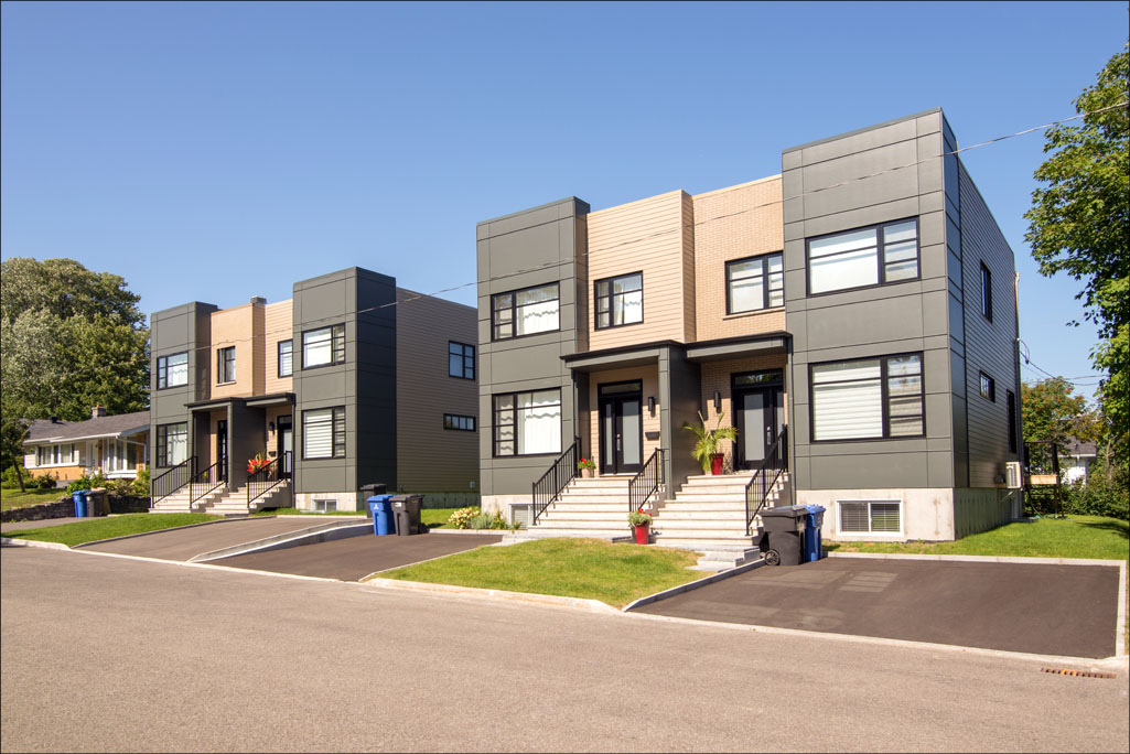 - Revêtements extérieurs : briques, fibrociment et acier