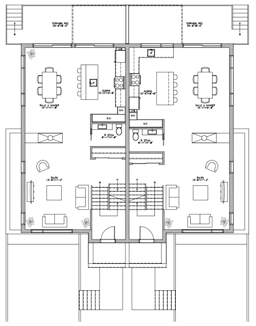 | Salle familiale | Sous-sol | 12 x 17 | Béton | Option |