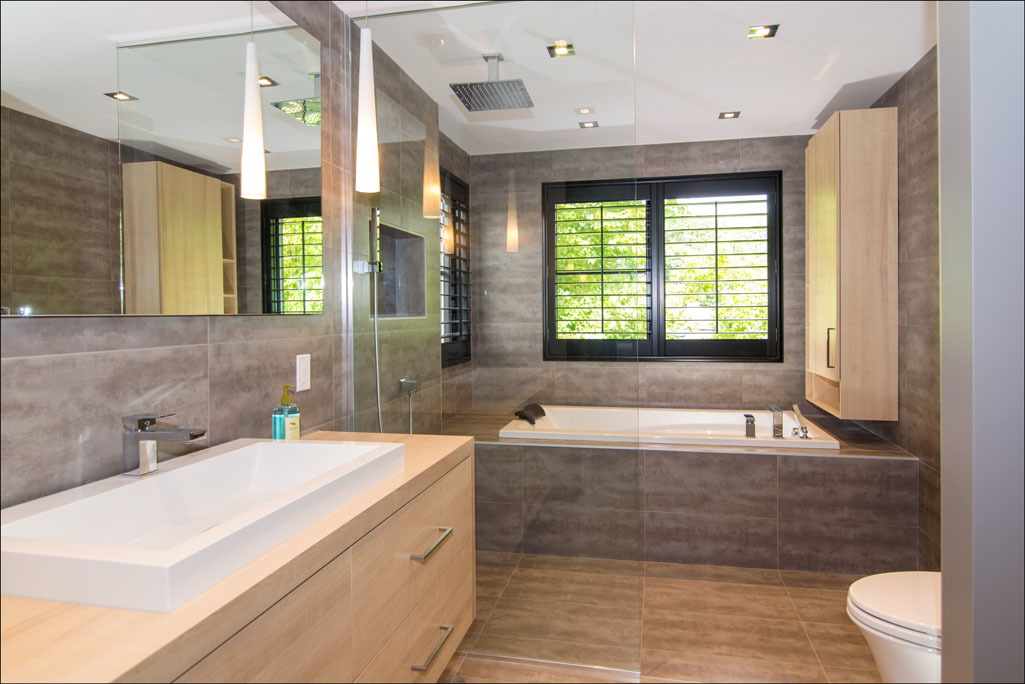 - Salle de bain avec douche indépendante et bain podium